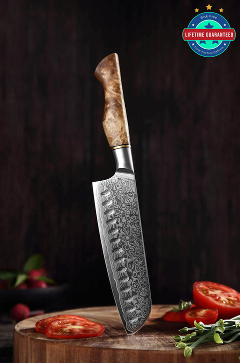 The outer Stainless Damascus layers and inner core combine for a total of 67 layers. This helps ensure durability and consistency in the blade’s internal structure. The 33 Damascus layers on either side are not just beautiful but also add a higher level of corrosion protection. Combined with the expensive heat and cryogenic freezing, the knife's quality is repeatable across the entire line.