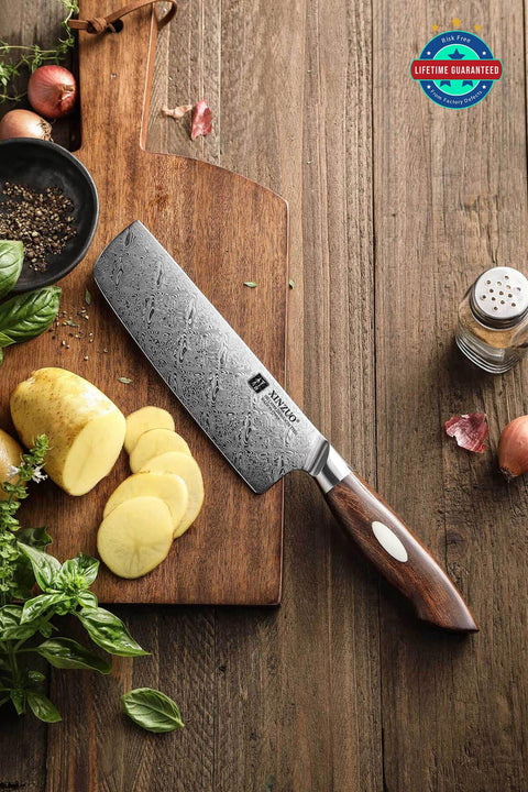 A kiritsuke knife is a specialized knife, boasting a long, flat blade with an angled tip - it excels in precise vegetable slicing and delicate fish cutting. The sharp edge and unique design allow for intricate cuts and chopping, providing functionality and finesse in the kitchen. While it’s normally included in comprehensive knife sets, it’s still multifunctional and is a stylish choice for any culinary enthusiast.