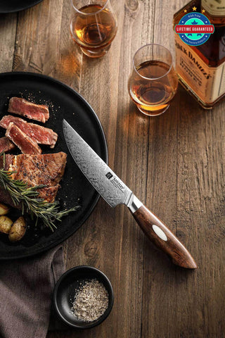 The utility knife is known for versatility, bridging the gap between a chef’s knife and paring knife. Its blade is between 4 and 7 inches long, so it can handle a variety of different tasks. It’s mid-sized blade offers excellent control and precision, making it ideal for tasks that are too large for a paring knife but too intricate for a chef’s knife. Thus, a utility knife is considered an indispensable tool - it’s found in both basic and comprehensive knife sets.