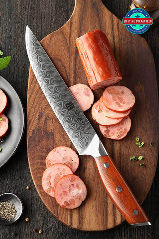 Starting with 60-61HRC, adding rare metals provides excellent anti-corrosion, anti-rust, and toughness properties. The high-quality blade is paired with a classic Japanese-designed octagonal handle known for its ergonomic design. The blade is incredibly strong and stable, and its razor-sharp edge can be maintained for months of frequent daily use. With this outstanding sharpness, you can easily slice through meat and vegetables as thin as you like, and it has an ergonomic design for comfort and long use.
