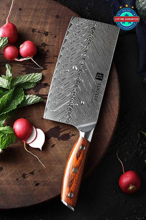 With a thorough understanding of what goes into high-quality steel, there’s no question why Xinzuo makes its knives using 10Cr15CoMoV Chinese V10 Steel. Not only is it made using a particular combination of chemical compounds that ensures the perfect amount of hardness, toughness, edge retention, and more, but it’s also produced using precise, expert manufacturing methods like high-end precision vacuum heat treatment.