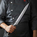 This 11 inch Forged Japanese Sashimi knife style is a great example of traditional Japanese cutlery. This is because of the overall blade and edge design.