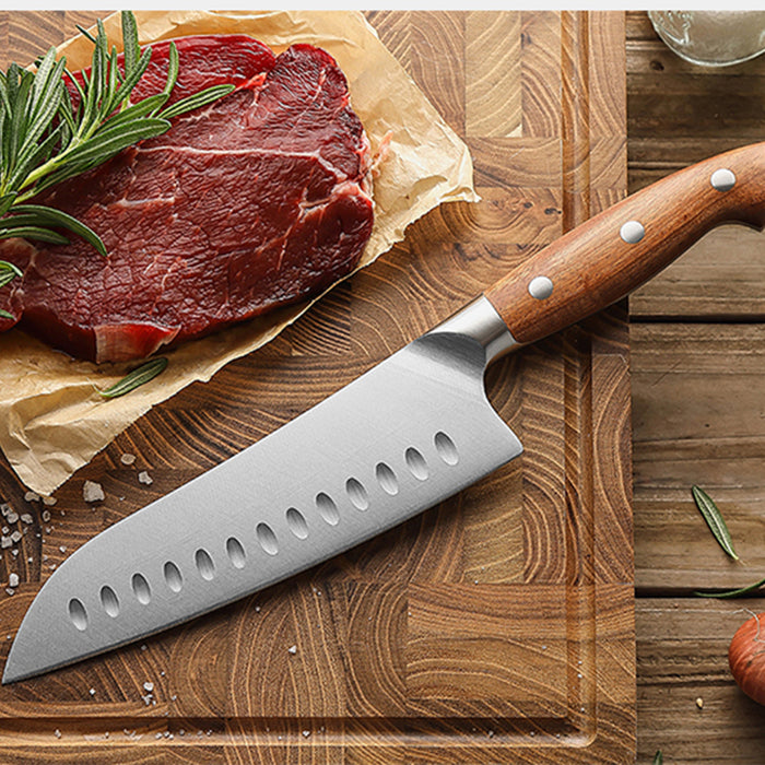 A Santoku knife is a versatile kitchen essential, perfect for slicing, dicing, and chopping with precision. Its shorter, lightweight design offers excellent control, while the Granton edge reduces food sticking. Ideal for vegetables, meats, and fish, this all-purpose knife enhances efficiency, making meal prep smoother and more enjoyable.