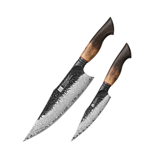Xinzuo X06 2 Pcs Chef & Utility 67 Layers Damascus Knife Set Burnt White Oak Handles