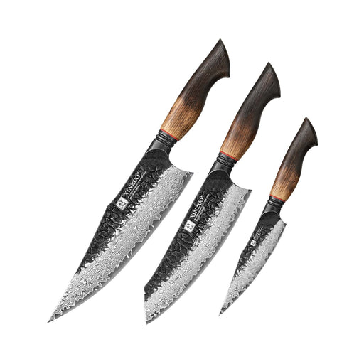 Xinzuo X06 3 Pcs Chef, Santoku & Utility Damascus Knife Set Burnt White Oak Handles