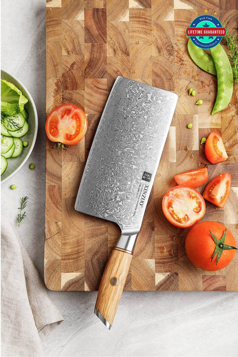 The knife steel is subjected to high heat within a vacuum furnace. The temperature is controlled to shape the metal's structure. It is then rapidly cooled using gas, water, or oil to finalize the structure, followed by tempering to find the right balance between hardness and toughness. This method improves surface quality, increases durability, and reduces distortion, enabling the attainment of sharpness that meets the expectations of even professional Chefs. Xinzuo & Hezhen use state-of-the-art Vacuum Deep-cooling Heat Treatment equipment to ensure they bring out all the qualities the steel can provide, keeping them ahead of their competitors in their final Damascus steel knife blades.