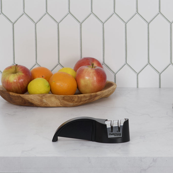 Experience the perfect blend of style and functionality with the Chef's Choice Model 478, a compact 2-Stage knife sharpener designed to give you razor-sharp edges with every use. This cost-effective manual sharpener expertly caters to kitchen, light sports, and pocket knives, making it a must-have tool for every home.