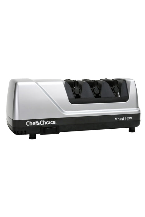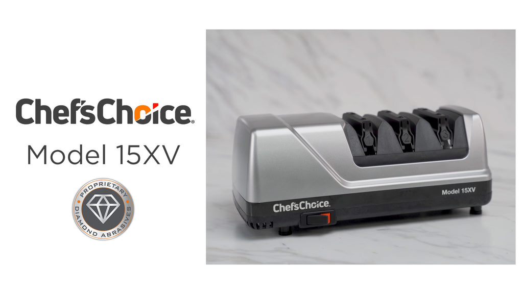 The Chef's Choice 15XV professional 3-stage electric knife sharpener is your ultimate solution for exceptional cutting performance on 15-degree class knives. Crafted with 100 percent diamonds, the hardest natural substance on the planet, our patented abrasives sharpen quickly and effortlessly, creating an extraordinarily sharp and durable edge.