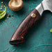 This means 14Cr14MoVNb has optimized the crystal structure of the steel in order to balance sharpness and corrosion resistance without using too many rare metals. Combined with two sections of Stainless Damascus Kitchen Knives, the blade can be very resistant to corrosion. The blade core and protective sections combine for a total of 73 layers.  The Big Rose Damascus pattern adds a classy look to this blade.
