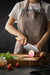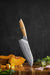 The knife is very durable, featuring a full tang blade. This adds additional support for the handle and allows the blade and handle section to be one solid piece of metal. The Olive wood is meticulously paired with the tang to keep the tang out of sight. This brings elegance to the handle’s performance.