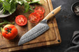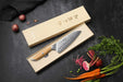 This traditional Santoku design Japanese kitchen knife is a great option for most of your cooking tasks. The wide blade makes quick work of vegetables with an up down rather than a rocking/cutting motion. Santoku knives are perfect for Chef's who enjoy chopping, slicing and dicing vegetables and meats.