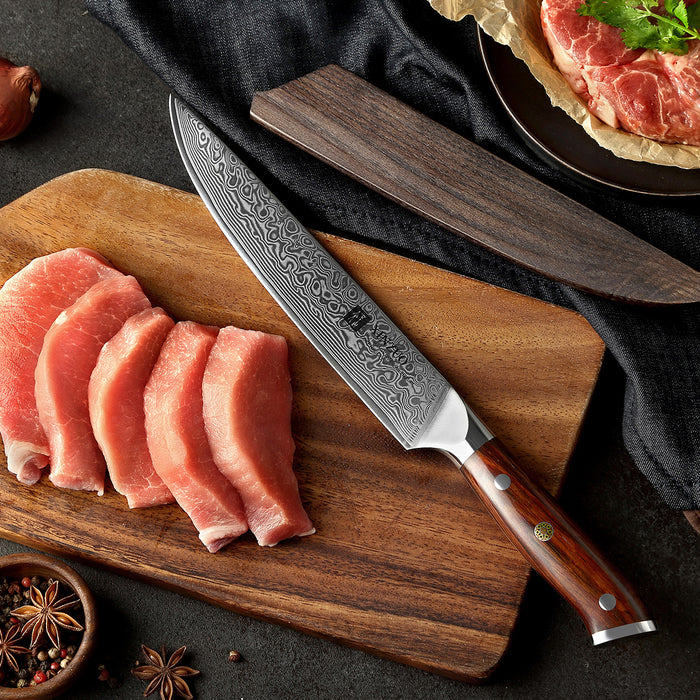 Xinzuo B13R 8" 67 Layer Japanese Damascus Steel Carving Knife Rosewood Handles