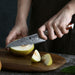 The 5 inch Damascus Steel Utility knife will be one of your most used knives. Right in the middle of other knives, the Utility knife can do most kitchen tasks. Not at the same level as more specialized knives, but good enough so you don’t have to get another knife out.