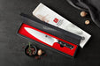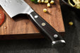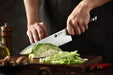 The 8.5 inch blade is a traditional Western-style design. This means it can slice and dice most foods ranging from fruits to meats to chocolates. This knife will be your go-to knife if you do a lot of heavy cooking.