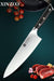 • XinZuo has been manufacturing kitchen knives for 20 years and have mastered the core technologies of Damascus knives, including steel and craftsmanship, blade cutting method, handle structure, blade thickness and blade angle.  XinZuo has the latest and most advanced technology and design concepts and is committed to researching Damascus kitchen knives.Their products are renowned for their precise cutting, high hardness, corrosion resistance and durability.