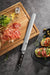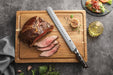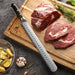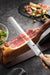 The 12 inch Granton blade style is optimized for clean slices. Unlike other kitchen carving knife designs, this style is better suited to only cutting tasks like shawarma or large hams/roasts. This is due to the lack of pronounced tip which makes it hard to piercing things. Granton carving knives make the best carving knives for meat.