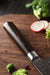 The handle features a lovely dark Pakka wood with silver accents. This creates a good contrast between the handle, Damascus pattern and the rest of the knife’s construction.