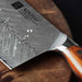 The Damascus Steel Cleaver is a beautiful example of well rounded design. Each blade is made up of 67 total layers of steel that is divided into two outer sections and one blade core.
