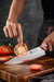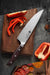 The 8 inch blade is a wonderful mainstay of the kitchen. It easily cuts and dices whatever you need it to except hard materials like bone. Most large cutting tasks will be the purview of this knife.
