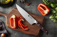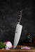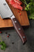 The handle features stainless accents and Red Sandalwood grips. cutting-boards The handle design gives a rustic appeal with the functionality of more traditional Western knives.