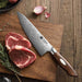 The 8.5 inch Damascus Chef knife is a great example of a traditional Western-style Chef Knife. This blade shape is excellent for your medium to large cutting tasks. It can handle slicing fruits, vegetables and meat in addition to dicing and some light chopping.