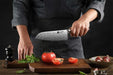 This traditional Santoku design Japanese kitchen knife is a great option for most of your cooking tasks. The wide blade makes quick work of vegetables with an up down rather than a rocking/cutting motion. Santoku knives are perfect for Chef's who enjoy chopping, slicing and dicing vegetables and meats.