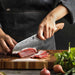 The 8.5 inch Damascus Chef knife is going to handle most of your medium to large cutting tasks in the kitchen. This classic Western-style blade design has a lot of cutting and slicing ability, handling meat to vegetables and even non-standard cooking tasks.