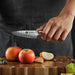 The 3.5 inch Damascus Paring knife is good for fruits and other small form cutting tasks. While there are a wide variety of Paring knife styles, this version has a more drop-point style of blade. This allows for cutting versatility and a thicker blade profile.