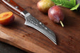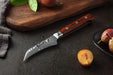 Use: This XinZuo Damascus Paring knife is a great option for your everyday small and intricate tasks. The shape, Tsuchime hammered raindrop Damascus finish and sharpness of the blade make it well-suited to a large range of small functional and creative tasks.