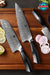 This 3 piece knife set is an elegant but functional addition to your kitchen. Each XINZUO blade features a beautiful damascus pattern blade mounted on a lovely G10 Handle that has a proper heat treatment for great edge retention and durability.