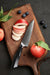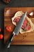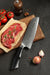 For more general cutting the 7.3 inch Santoku knife allows you to use a rocking method to efficiently cut vegetables and some meat. Unlike a chef’s knife, the Santoku is designed to deal with higher water content vegetables. Cutting lettuce and cucumbers is not a problem for this knife design.