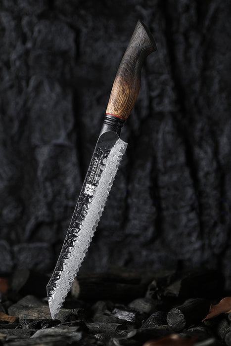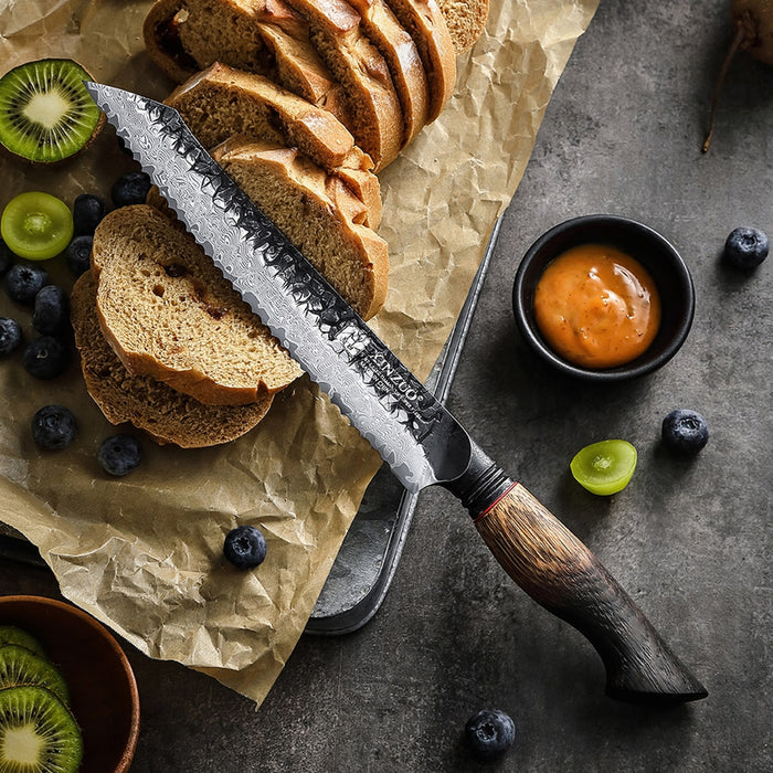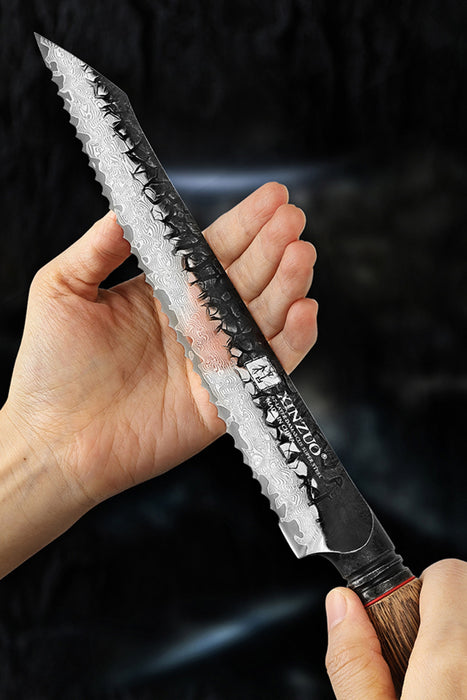 Xinzuo X06 67 Layers Damascus Steel Bread Knife Burnt White Oak Handles
