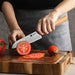 Tip: Wash and dry your Santoku after use to ensure it stays sharp and rust free. Avoid cutting into extremely dense materials like bone, ice, or coconut shells.