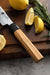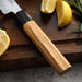 The handle is a traditional Japanese Octagon shape. While it might not sound comfortable, this style of handle is actually great for working with a knife for a long time. It provides a firm grip and multiple hand positions while using the knife.