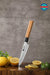 This traditional design Japanese Utility knife is a great option for most of your cooking tasks. The wide blade makes quick work of vegetables, just like a Santoku knife, while the point allows you to work easily with fish and meats.